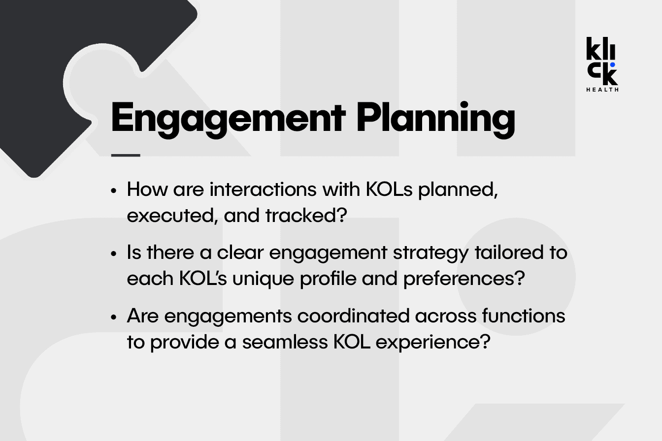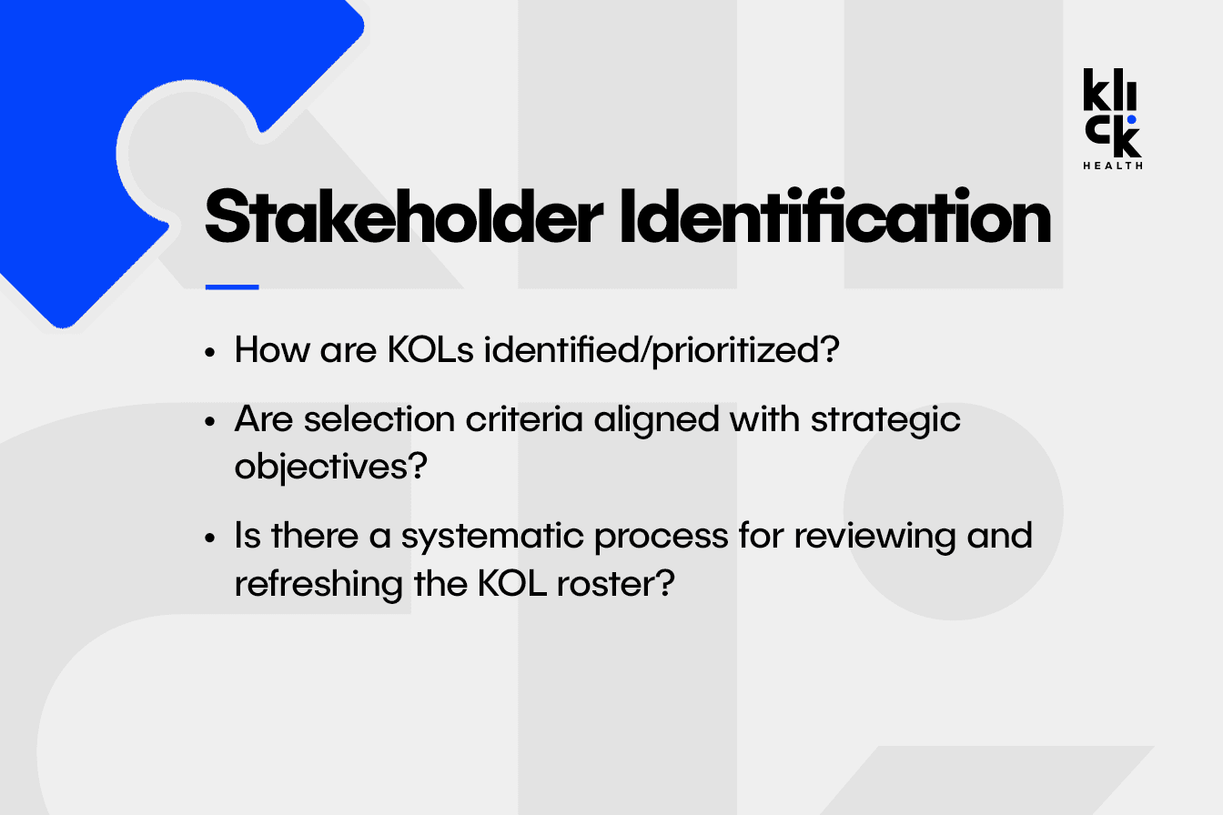 With both agency and client-side experience, Klick’s Strategic Stakeholder Engagement team provides a competitive edge by leveraging data-driven expert identification and proprietary planning frameworks. We believe that a diverse and expert stakeholder ecosystem is essential for achieving meaningful engagement. Collaborating with our clients, we focus on building key relationships, improving coordination with HCPs, KOLs, and DOLs, and optimizing engagement strategies. Our tools, like the Stakeholder Maturity Index, help enhance engagement opportunities at every stage of product development. This proprietary framework identifies and connects key stakeholders, breaking down silos to create a best-in-class engagement strategy.